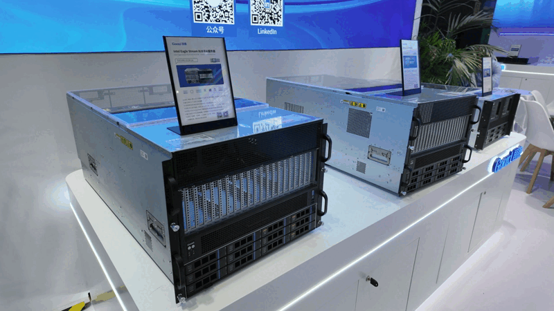全球最高算力密度旗舰:首发亮相的Intel Eagle Stream平台8U16卡AI服务器(SY8116G-D12R-G4),以单机容纳最高20张GPU的极限设计刷新行业纪录。其配备32条DDR5内存插槽与26个PCIe扩展槽,支持12盘位热插拔存储,为千亿参数大模型构建“城市级智能中枢”提供核心承载,适用于人工智能、智慧城市、医疗健康及虚拟现实等领域。据悉,这款产品将在今年年底正式上市。